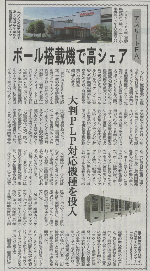 We are pleased to announce that an article featuring Athlete FA was published in the Electronic Device Industry News, an industry-specific publication, on April 2nd, 2026 (Issue No. 2695).