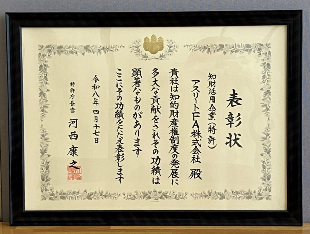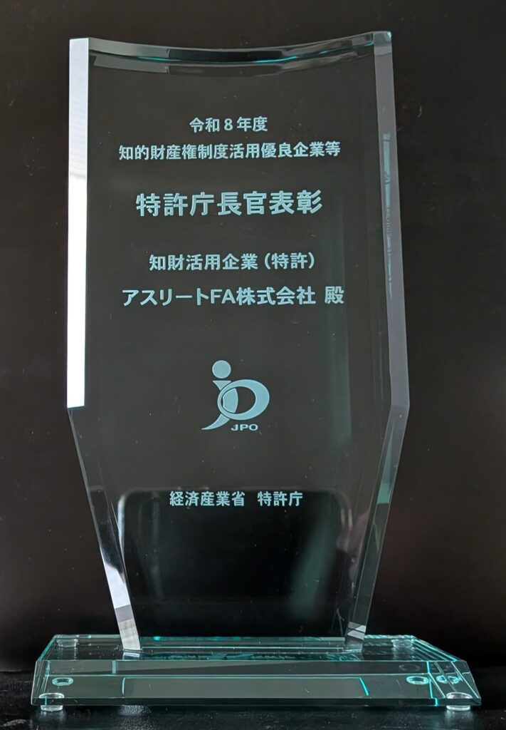 アスリートFA株式会社は、「令和8年度 知財功労賞 知的財産権制度活用優良企業等表彰 特許庁長官表彰 知財活用企業〈特許〉」を受賞しました。